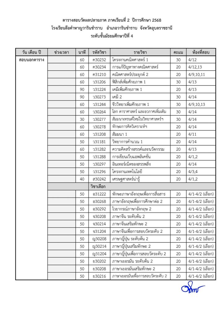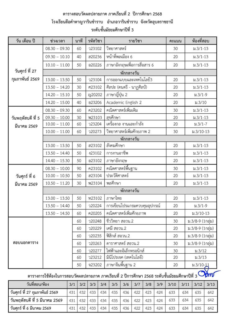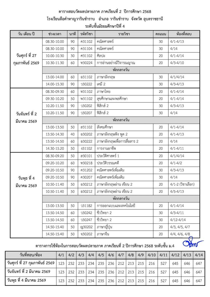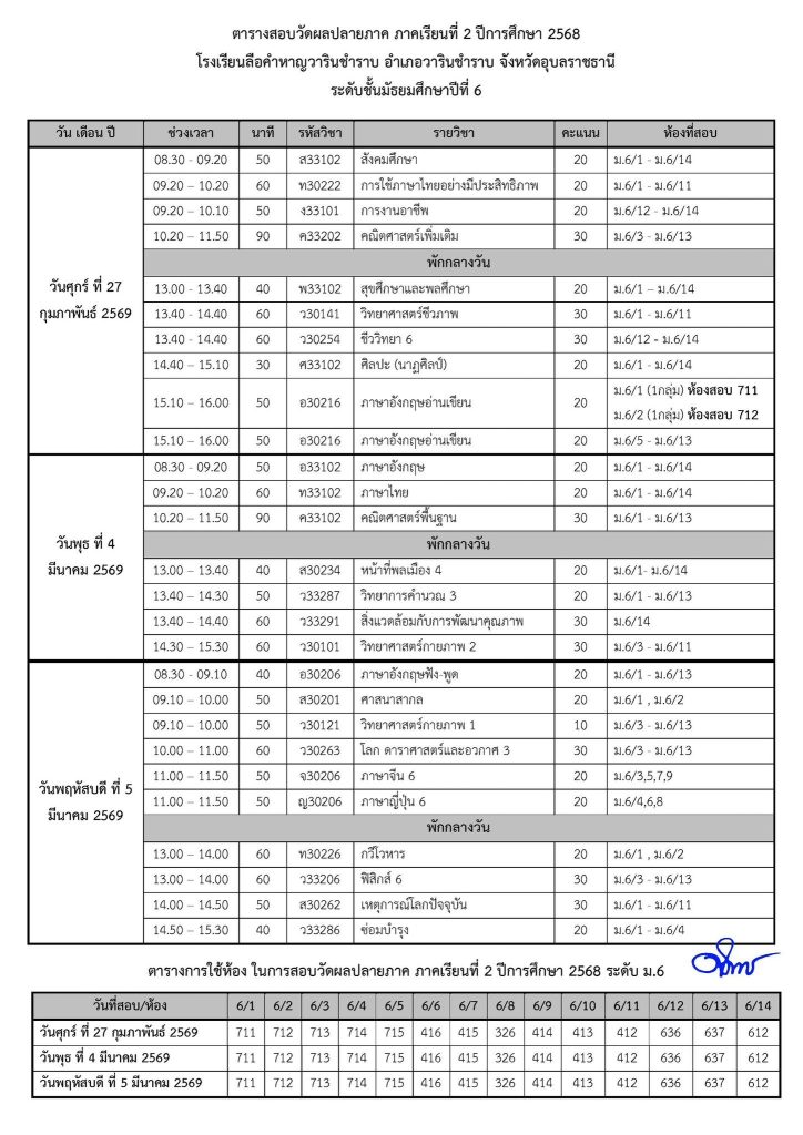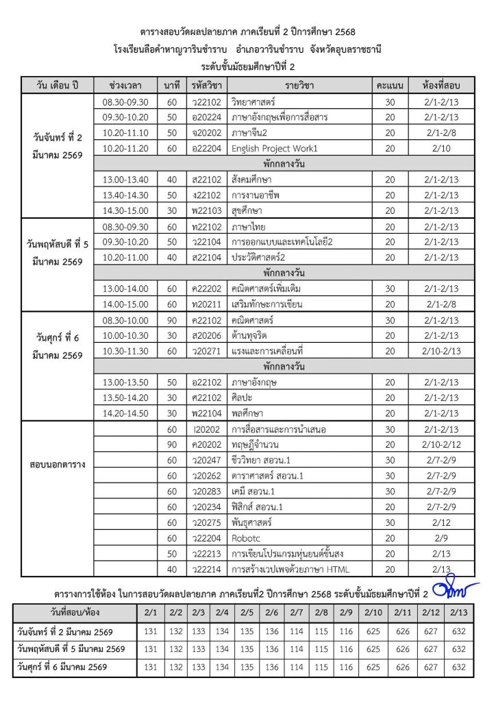 ข่าวประชาสัมพันธ์ ตารางสอบปลายภาค ภาคเรียนที่ 2 /2568 Posted on 18 กุมภาพันธ์ 202624 กุมภาพันธ์ 2026 by admin admin ดาวน์โหลดแบบฟอร์ม แบบทดสอบปลายภาคภาคเรียนที่ 2/2568 ประกาศโรงเรียนลือคำหาญวารินชำราบ เรื่อง รับสมัครบุคคลเพื่อคัดเลือกเป็นลูกจ้างชั่วคราวรายเดือน ตำแหน่ง ครูอัตราจ้าง , เจ้าหน้าที่บันทึกข้อมูล และเจ้าหน้าที่ประสานโครงการ ห้องเรียนพิเศษทางเทคโนโลยี ( GP-TECH )